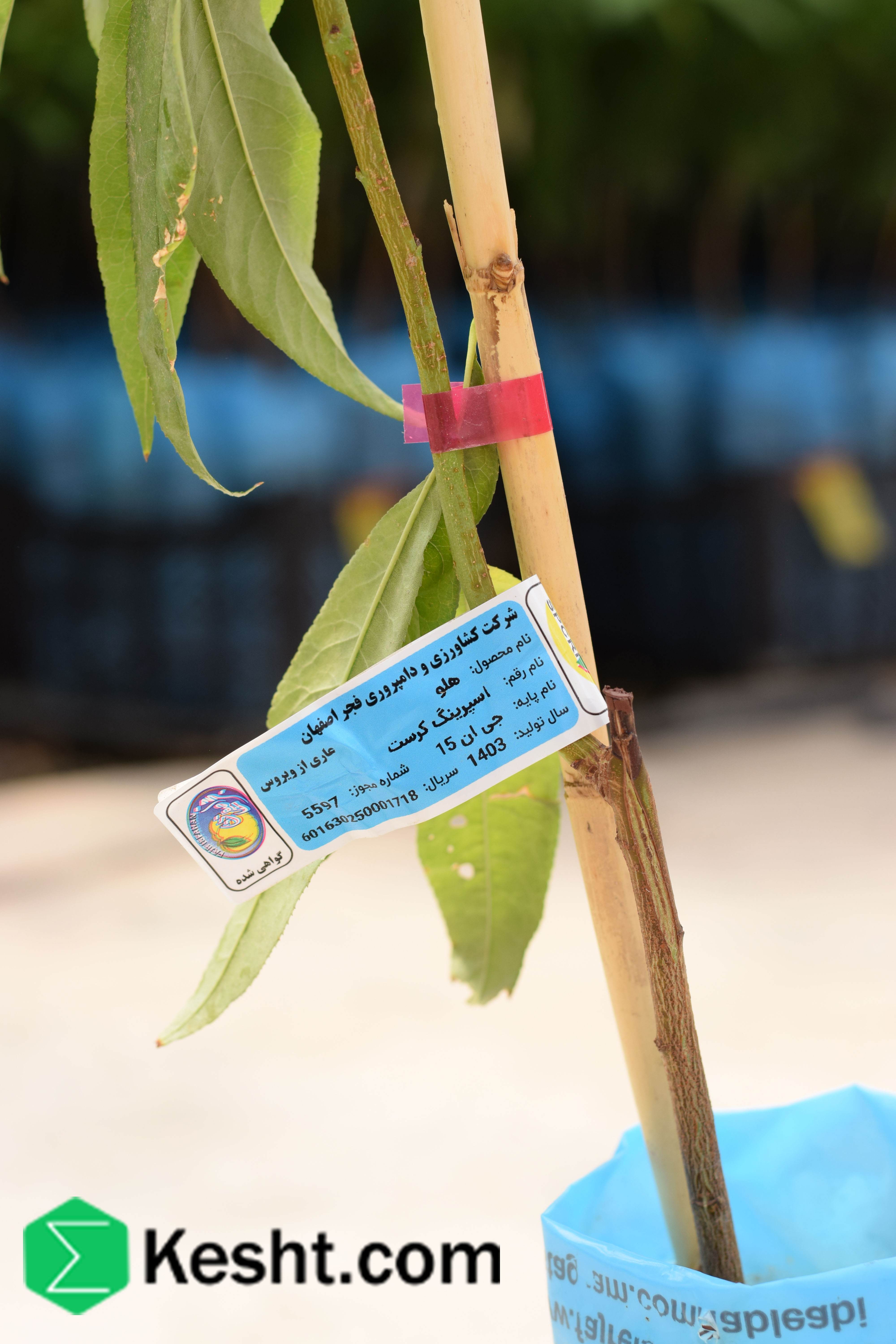 کشور مبدا آمریکا، هسته جدا، زود رس، میوه با اندازه متوسط، رنگ پوست قرمز مایل به صورتی، بافت گوشت سفت و زرد رنگ با انبارمانی مناسب، خود گرده افشان